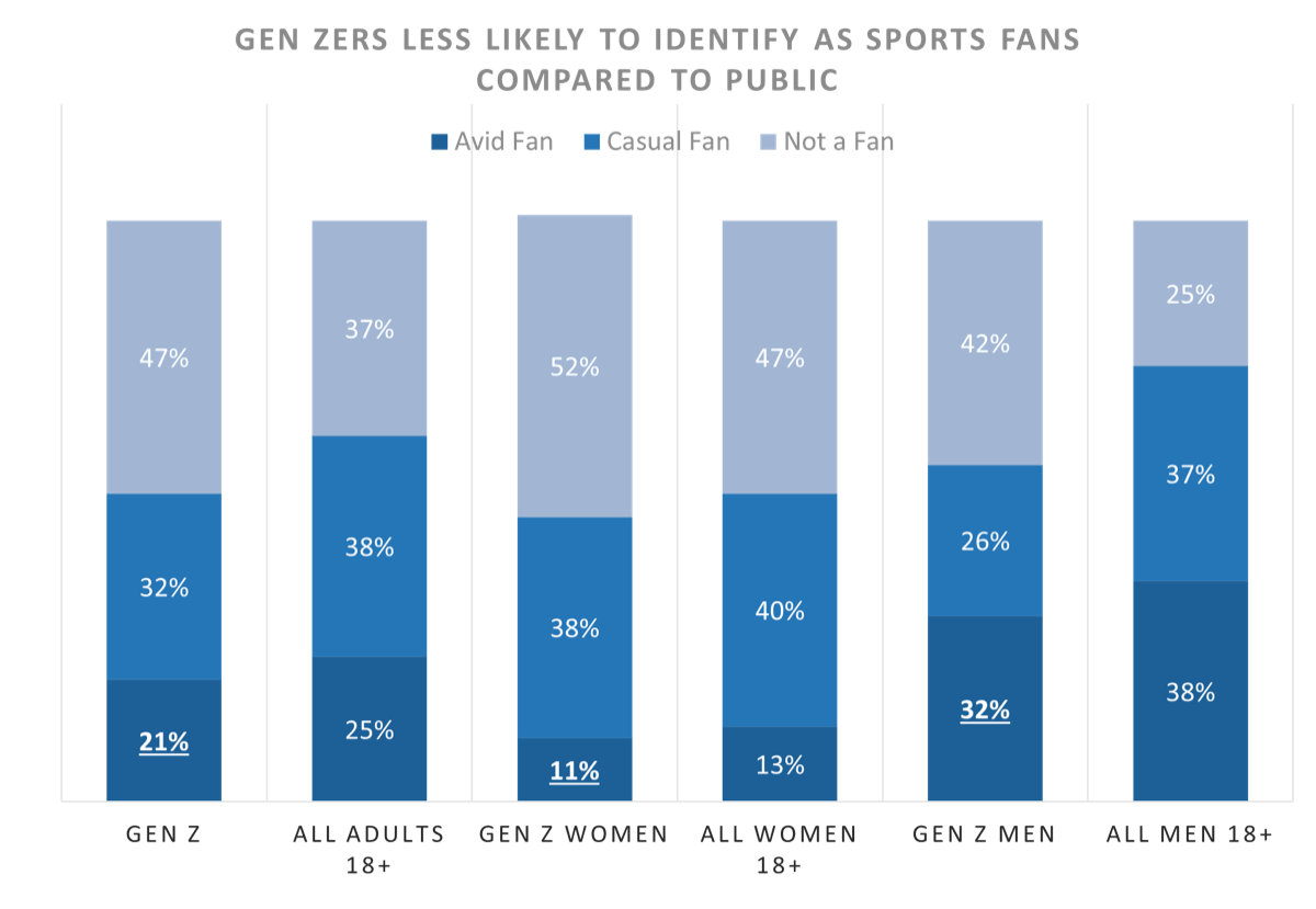 It is important to note that Gen Z as a whole is less likely to be an avid fan.